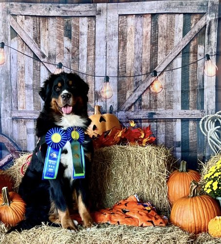Jersey has been very busy in the Spring of 2025! She earned her Novice Draft Dog title and Advanced High In Trial Scent Work dog at the BMDCA National Specialty in Gettysburg, PA. The following week, Jersey finished her Beginners Novice Obedience title in May, 2025 with a score of 199.5 out of possible score of 200 and a 1st place. Then they were entered in a trial in the afternoon and compete in Novice B obedience and then on Saturday 2 trials in Novice B. Jersey knocked it out of the park with scores of 196, 195 & another 196 (all were 1st places) to get her Companion Dog (CD) title. We are so excited about her future!